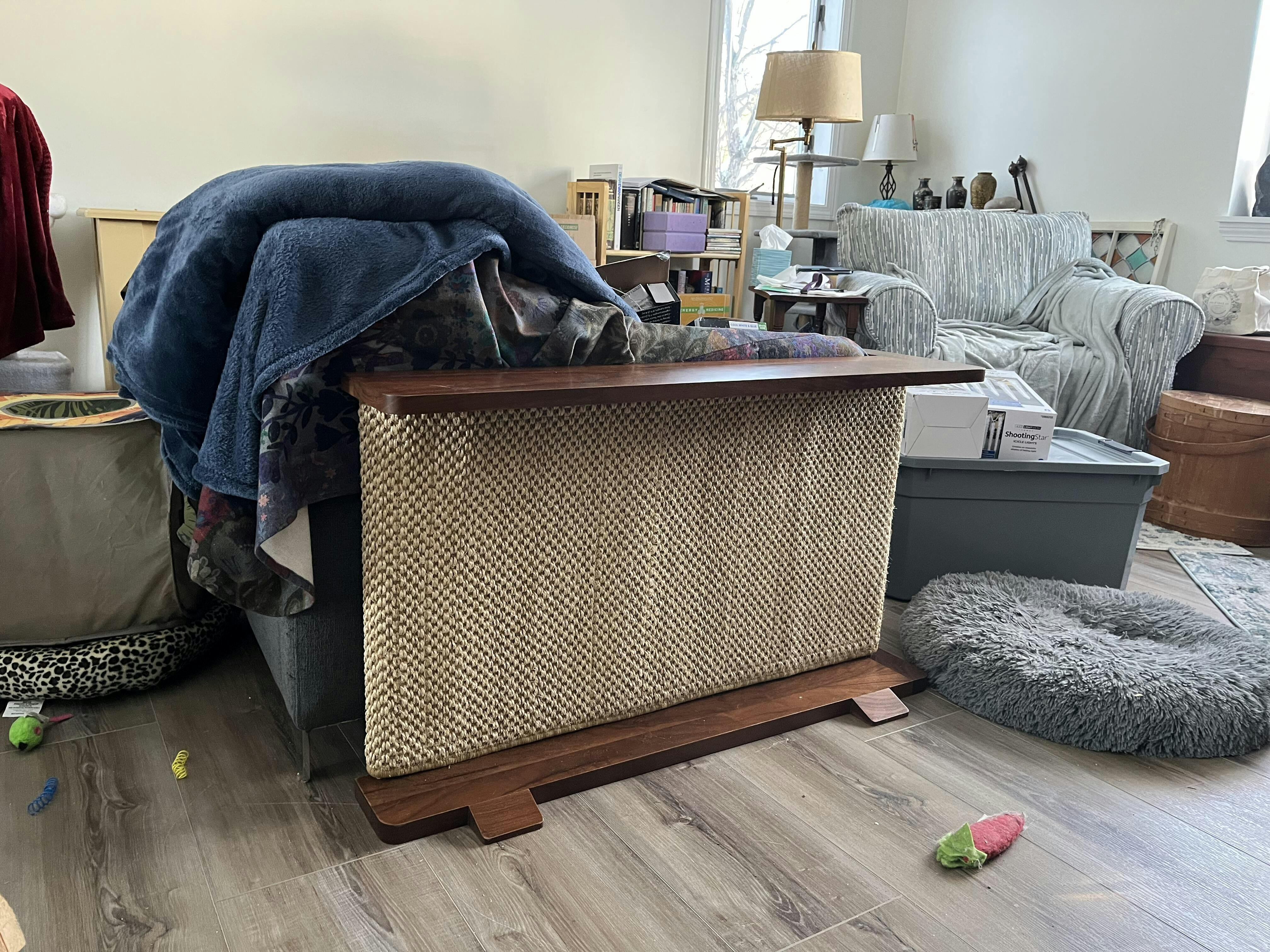 Provide a scratching post or furniture like the Cat-e-Corner, a scratcher that doubles as a side table. It keeps cats entertained and your sofa safe.